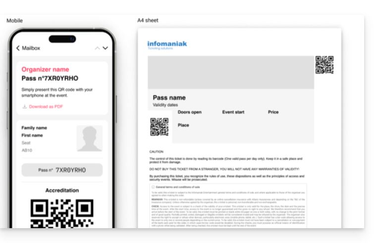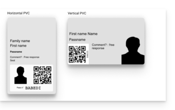 PVC format passes have a format that allows visitors to use them in digital format on their phone and the organizer to print them on a PVC card using a printer available for rent: