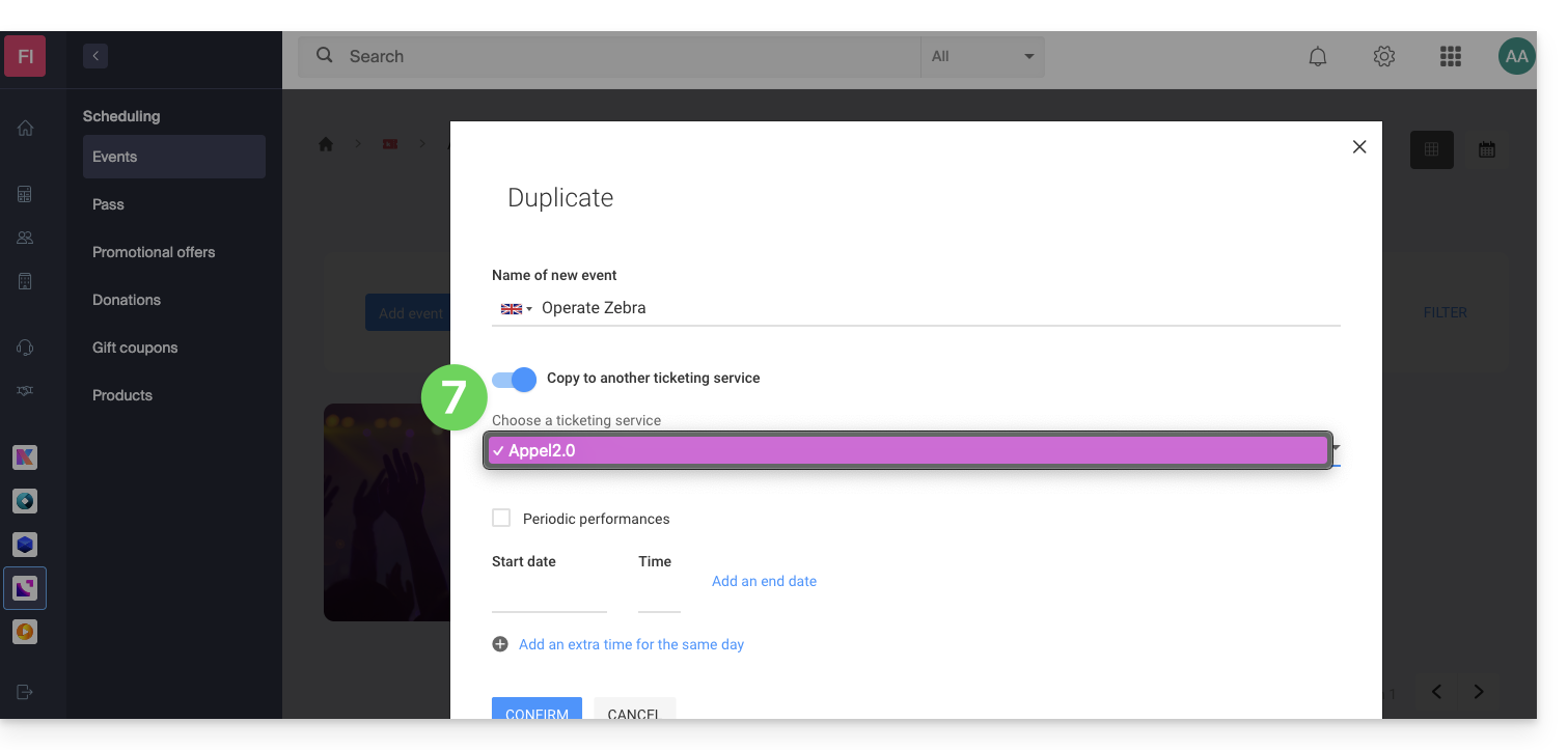 - If necessary, refer to this other guide regarding the duplication (unique or recurring) of an event on the same ticket office.