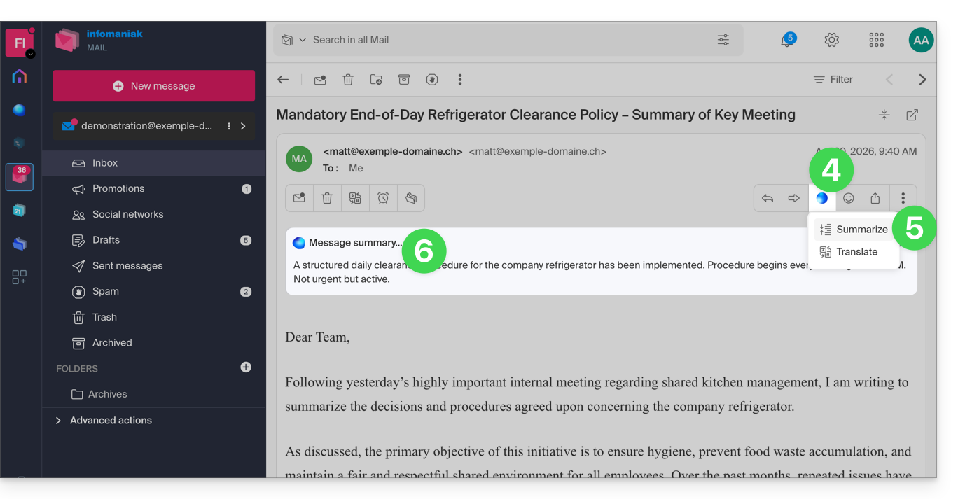- Enable discussions mode for your email addresses in the Infomaniak Web app Mail (online service ksuite.infomaniak.com/mail).