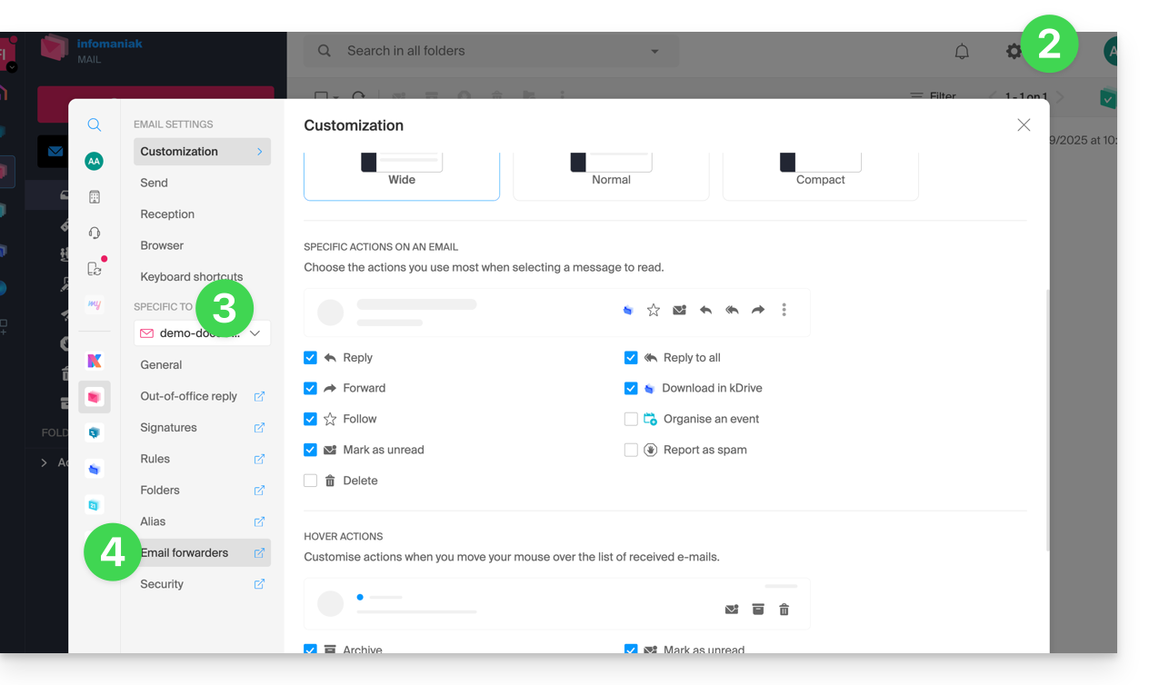 This guide explains how to automatically transfer new messages from an existing email address, managed by Infomaniak, to the email account of your choice, even if it is completely external to Infomaniak, while keeping (or not) the messages.