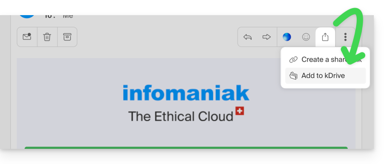 - Otherwise, you can also click on the Add to kDrive icon at the top of the concerned message: