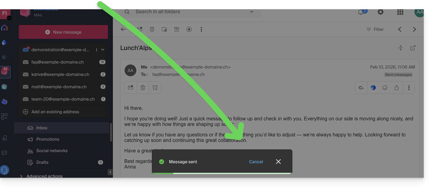 - Click here to access the Infomaniak Web Mail app (online service ksuite.infomaniak.com/mail).