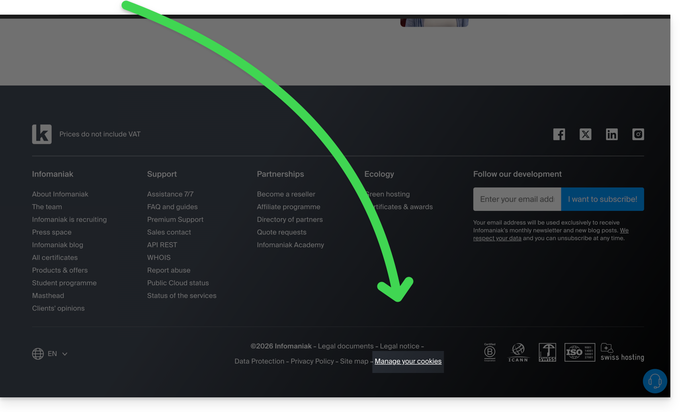 - Click here to access the management of your product on the Infomaniak Manager (need help?).