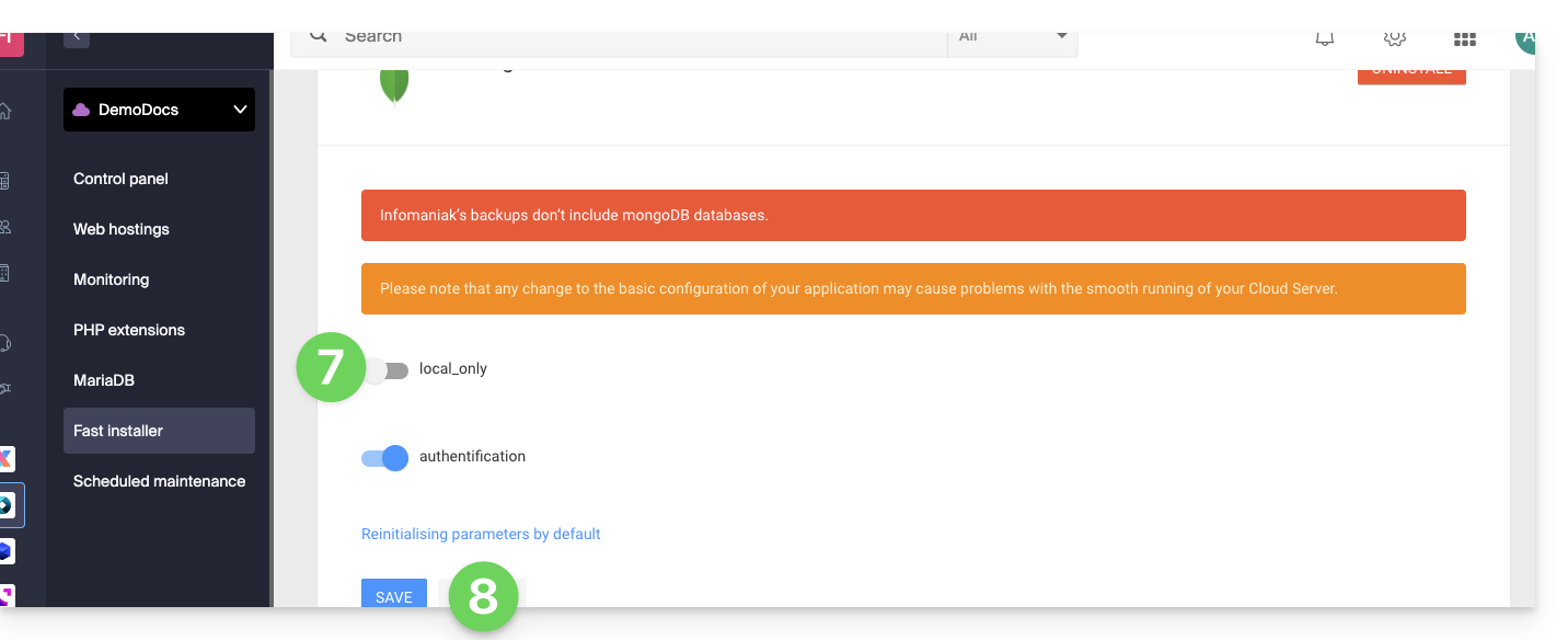 En cuanto a MongoDB, es necesario desactivar la opción local_only desde Fast Installer: