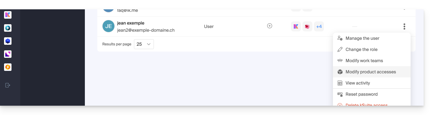 - Haga clic en el menú de acción ⋮ situado a la derecha del usuario concernido.