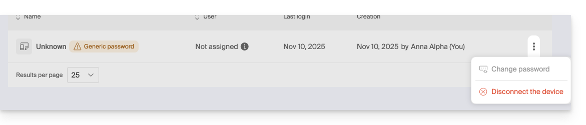 6. Haga clic en el menú de acción ⋮ situado a la derecha del dispositivo correspondiente.