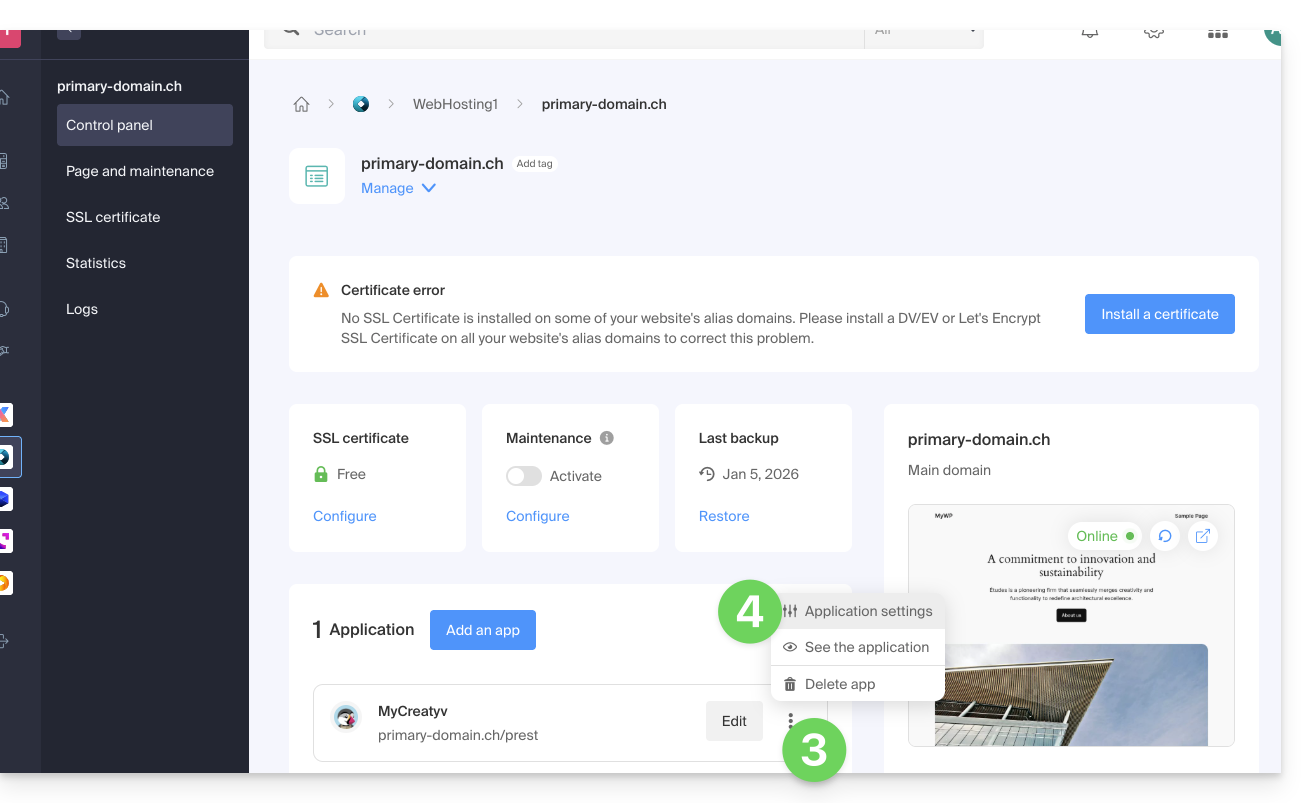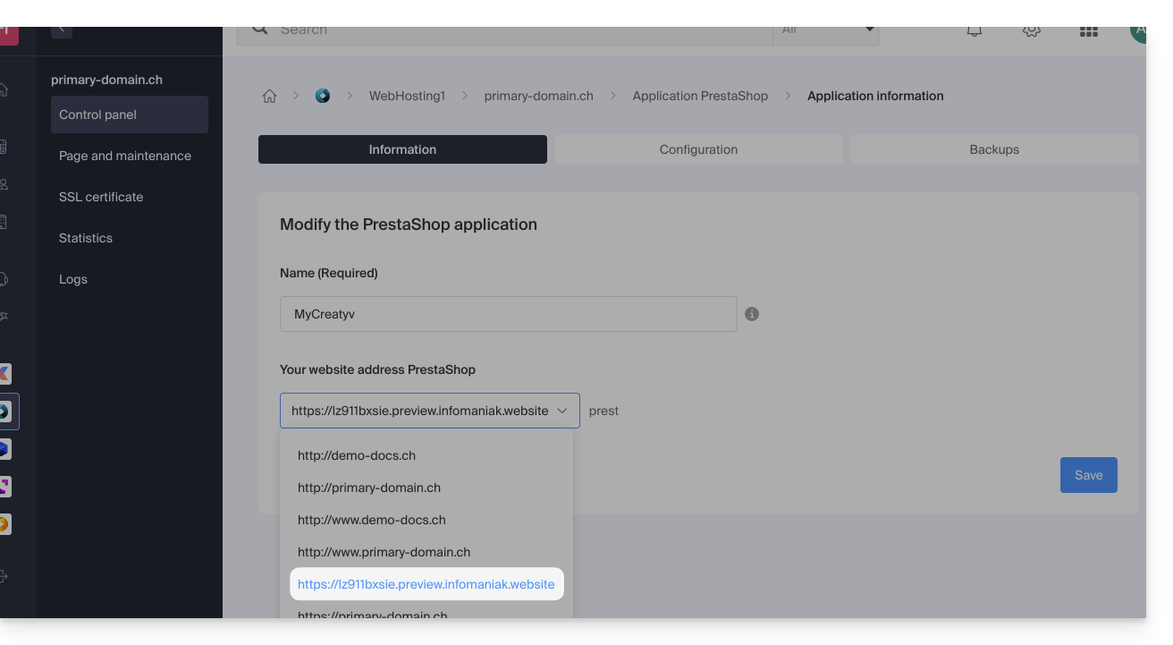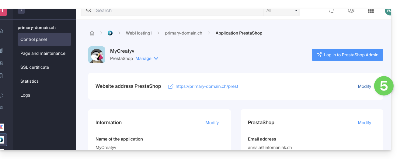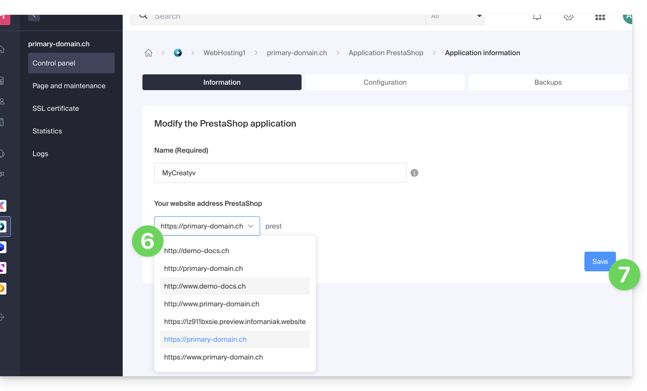 Cambiar el nombre de dominio de una Aplicación Web Infomaniak