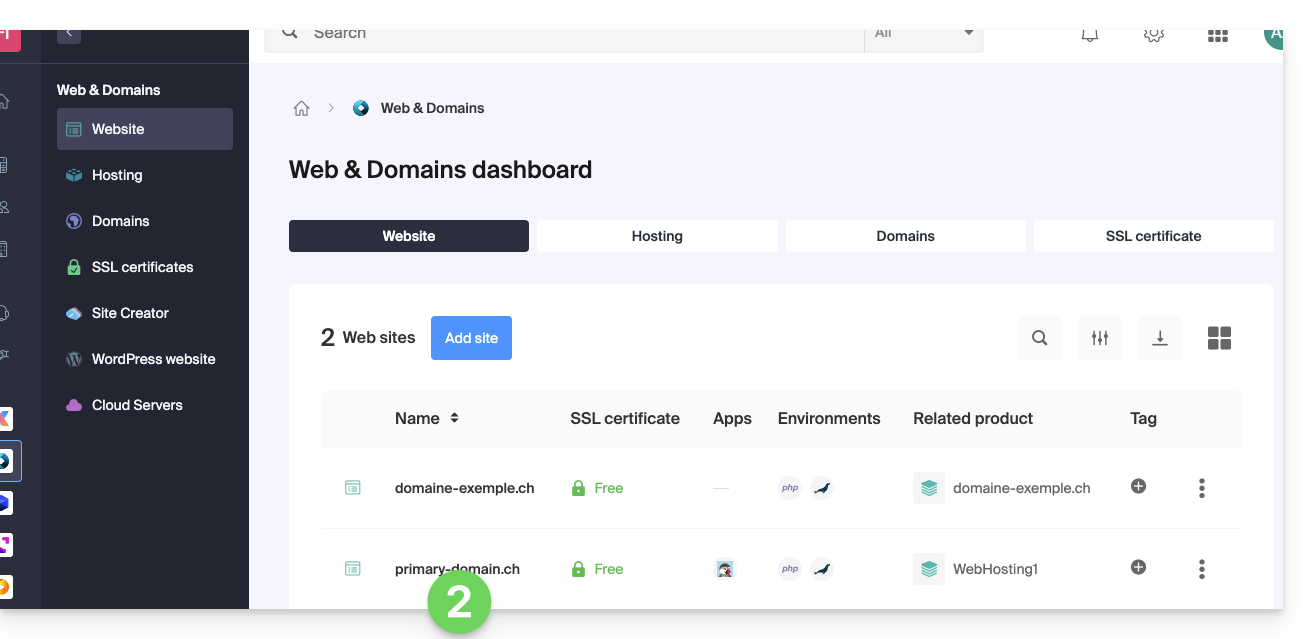- Haga clic aquí para acceder a la gestión de su producto en el Manager Infomaniak (¿Necesita ayuda?).
