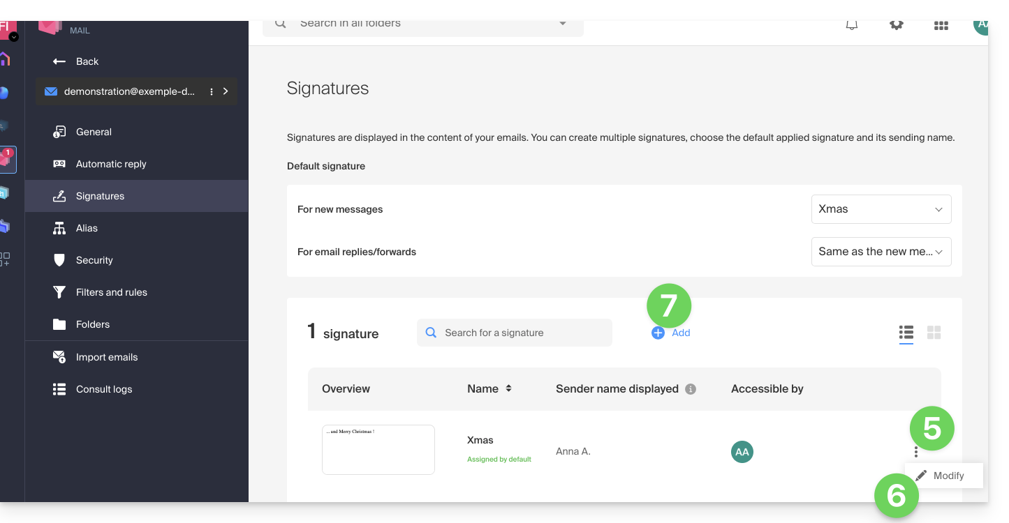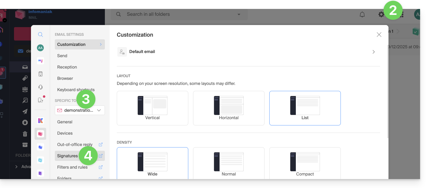 - Sin embargo, tenga en cuenta: no hay ninguna relación entre los parámetros introducidos en la sección Firma de Mail de Infomaniak y los programas/clientes de correo electrónico.
