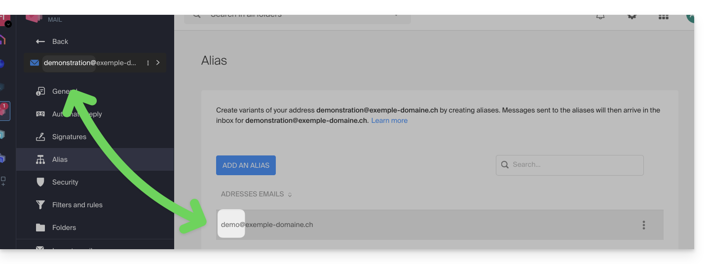 Esta guía explica cómo configurar una dirección de envío y respuesta diferente a la dirección de correo electrónico utilizada en la plataforma Infomaniak.