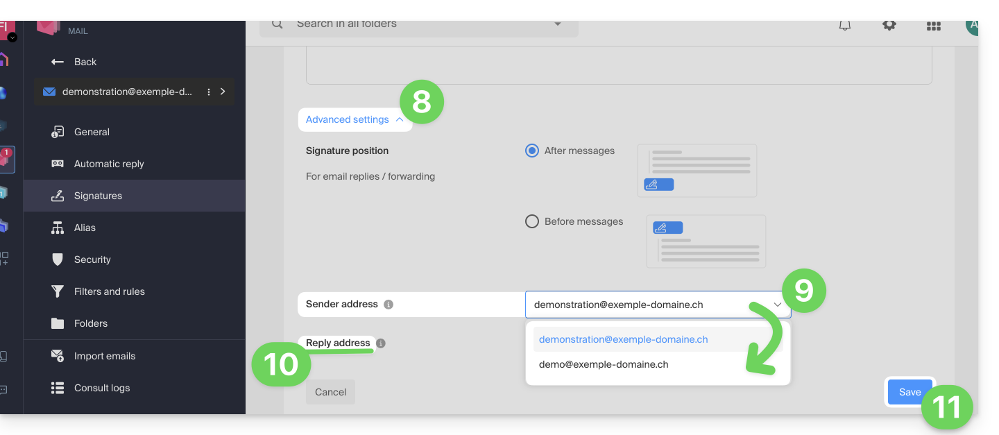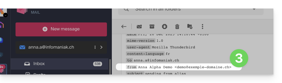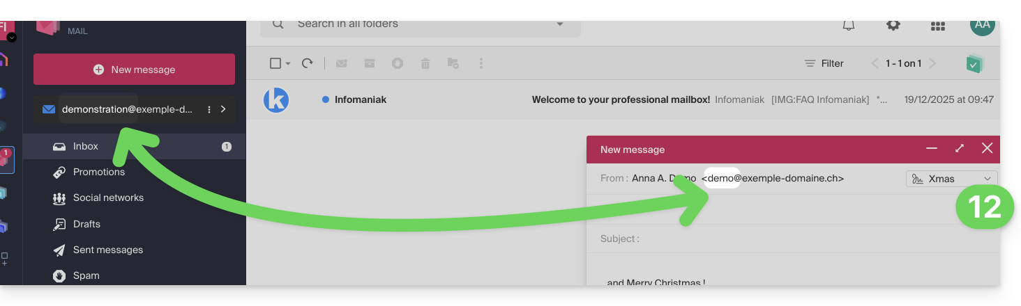 Configurar la dirección de envío en la aplicación web Mail de Infomaniak