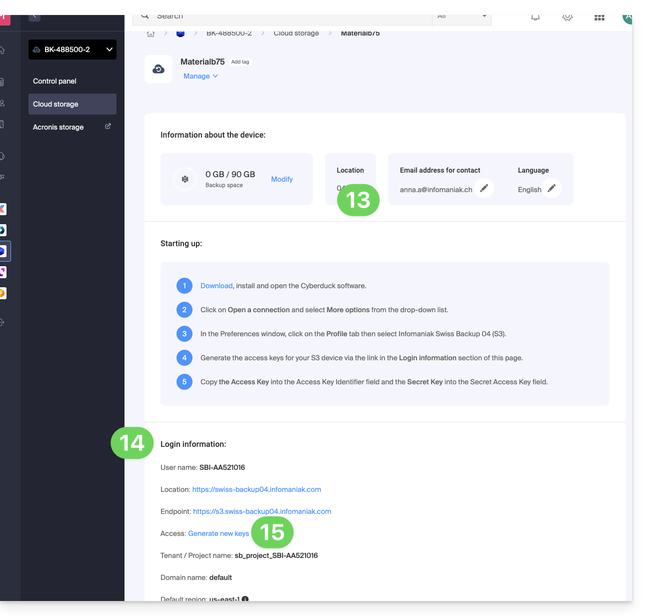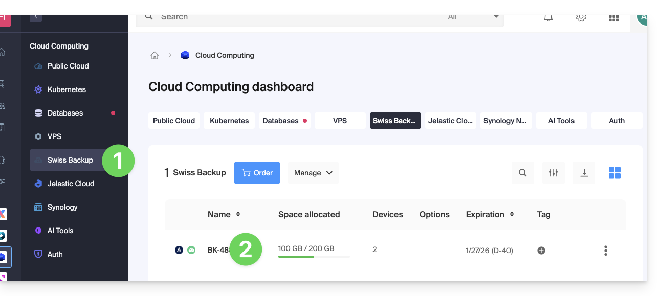 Esta guía explica cómo crear un nuevo dispositivo (copia de seguridad en la nube a través de S3 Compatible) en Swiss Backup, la solución de copia de seguridad en una nube suiza independiente.