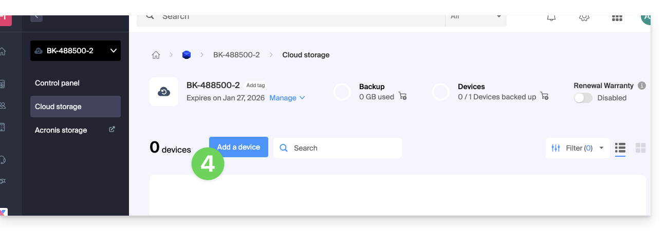 - Haga clic en el botón azul Gestionar mis dispositivos (en la sección Espacio de copia de seguridad en la nube):