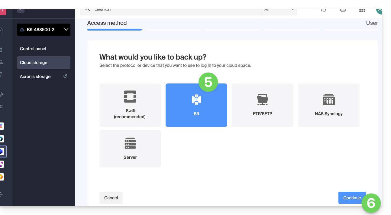 - Seleccione el tipo/protocolo de copia de seguridad libre S3.