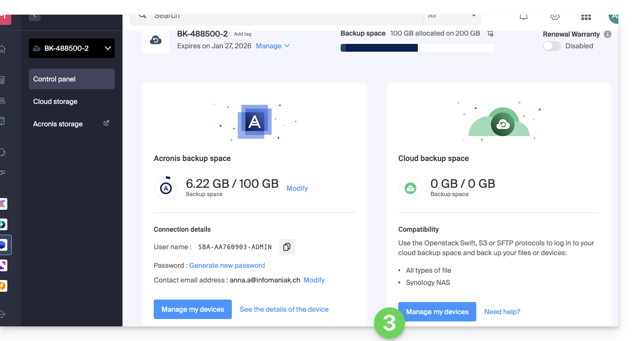 - Comprar un espacio Swiss Backup de Infomaniak.