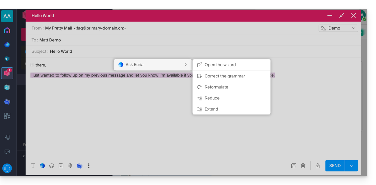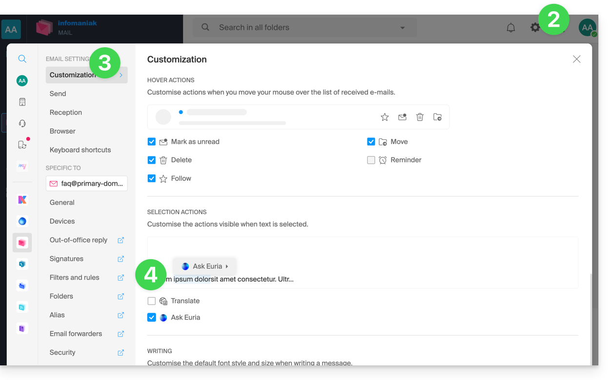 Usar Euria en la aplicación Web Mail Infomaniak (asistente de redacción)