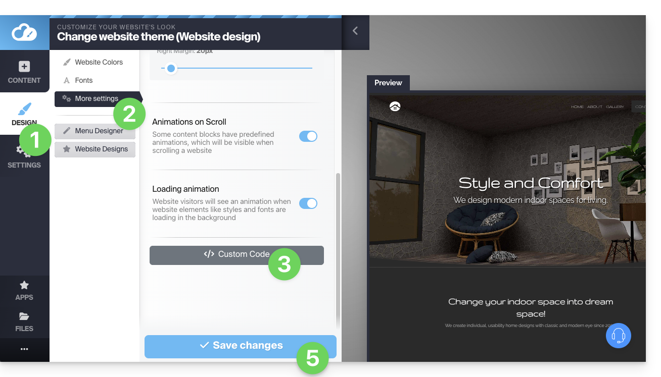 - Haga clic en Diseño en el menú lateral izquierdo.