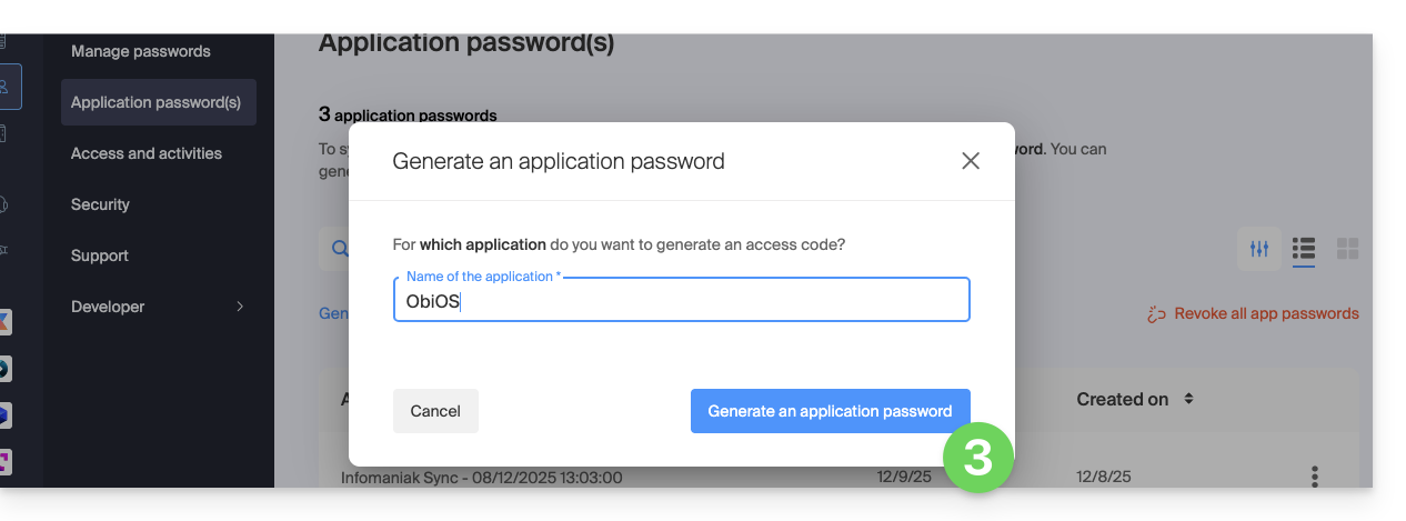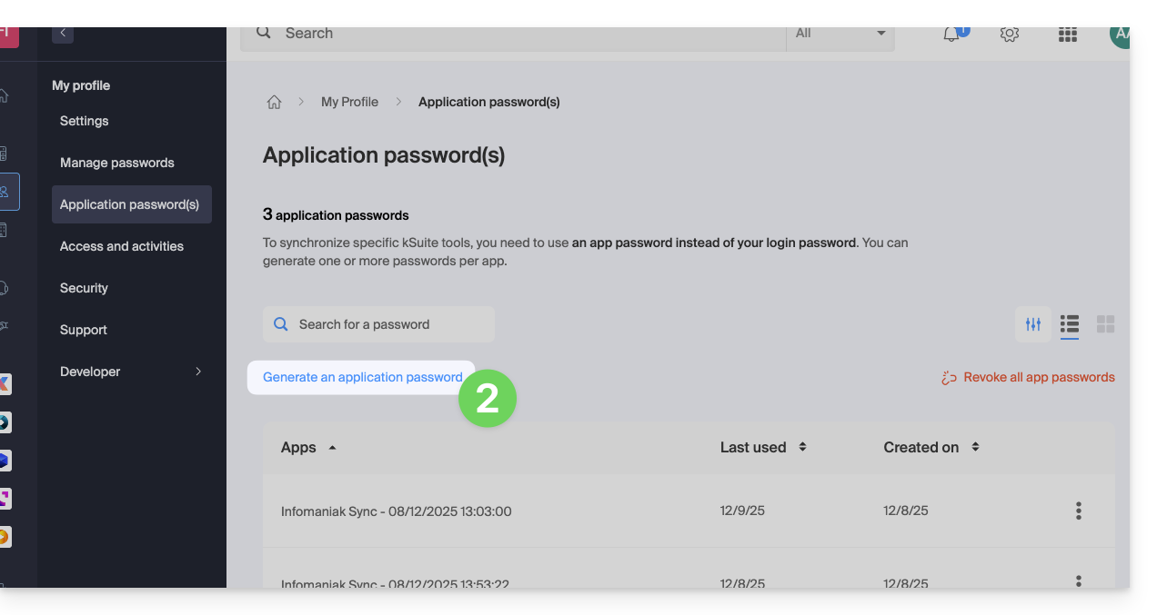 1. Haga clic aquí para acceder a la gestión de las contraseñas de la aplicación en el Manager Infomaniak.
