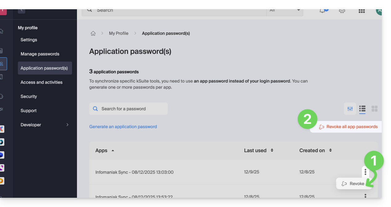 Esta guía trata sobre la gestión de las contraseñas de la aplicación desde el Manager Infomaniak.