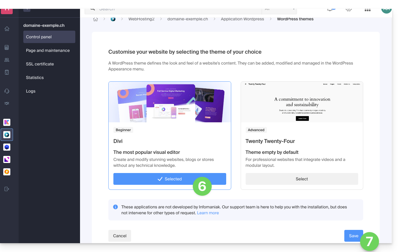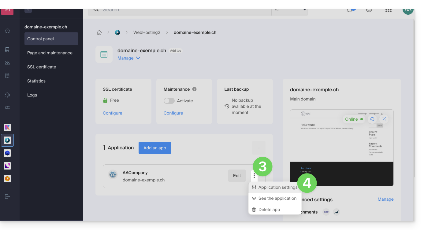 - Poseer un sitio web en un alojamiento de Infomaniak (incluso un simple Starter, la página web básica que activar si es necesario).