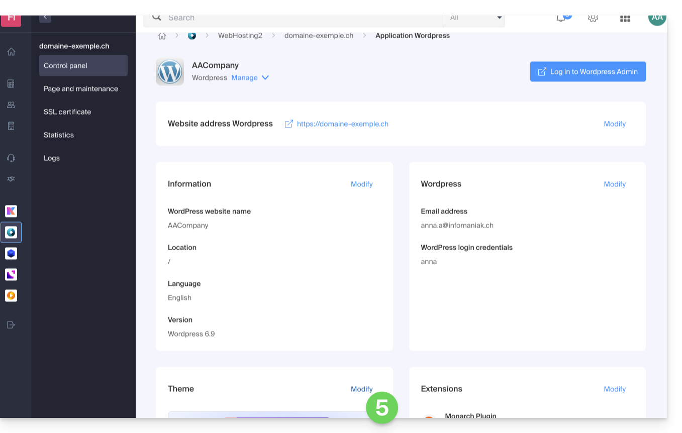 - Haga clic aquí para acceder a la gestión de su producto en el Administrador de Infomaniak (¿Necesita ayuda?).