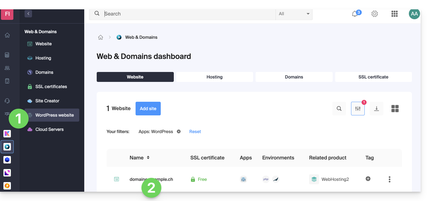 - Haga clic aquí para acceder a la gestión de su producto en el Manager Infomaniak (¿necesita ayuda?).