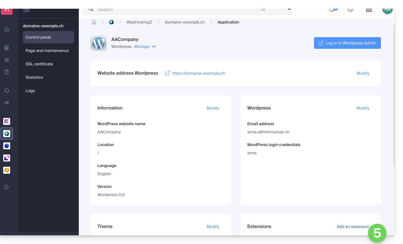 - Vuelva a su Manager de Infomaniak para descubrir y utilizar sus nuevos productos: