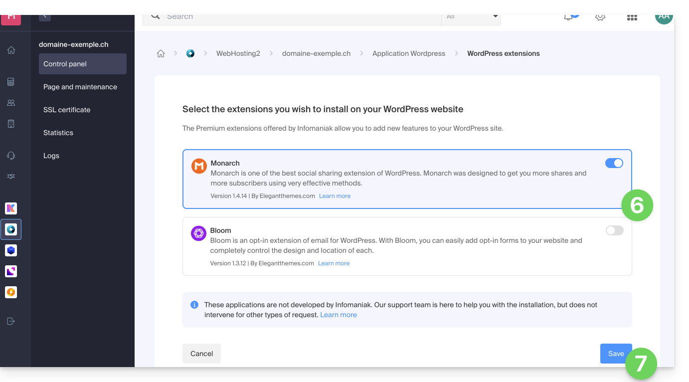 - Poseer un nombre de dominio en Infomaniak (una zona DNS no es suficiente).