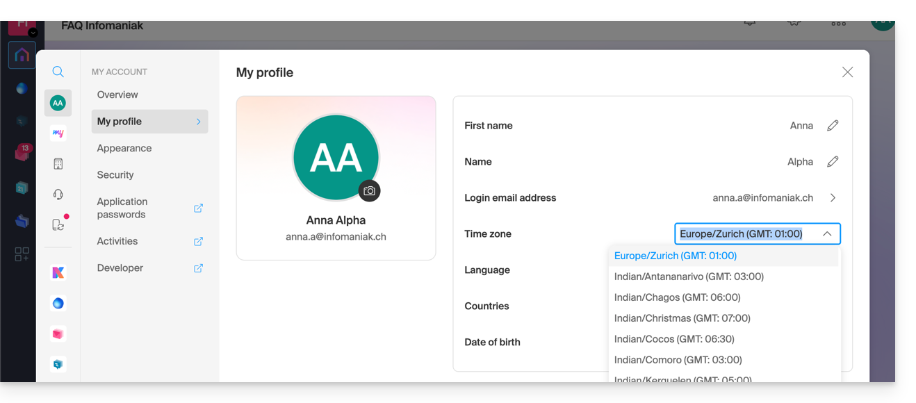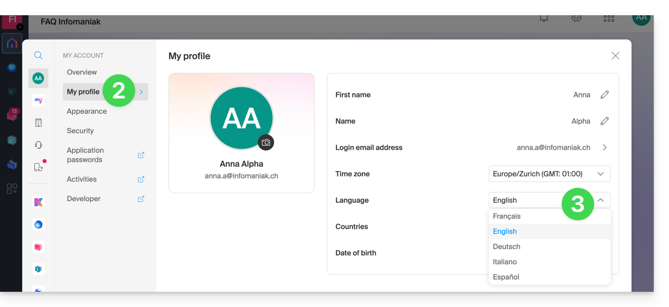 - Consulte esta otra guía si busca información sobre su cuenta Infomaniak.