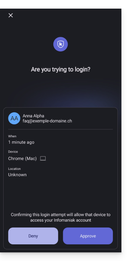 - Esta contraseña también le permite conectarse a my kSuite y a las diferentes aplicaciones iOS / Android como kDrive, Infomaniak Mail, etc. (más información) pero no es la contraseña de la dirección de correo electrónico!