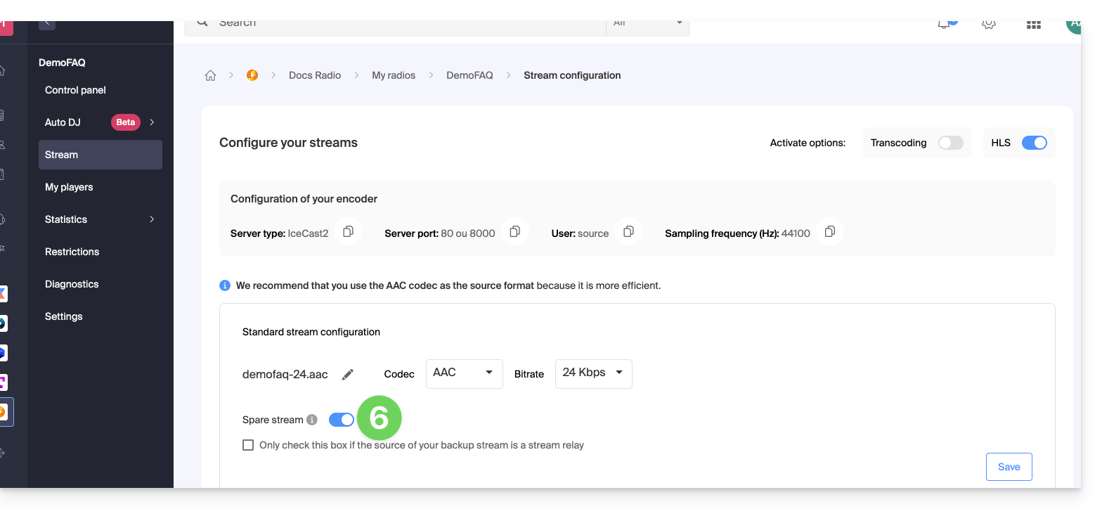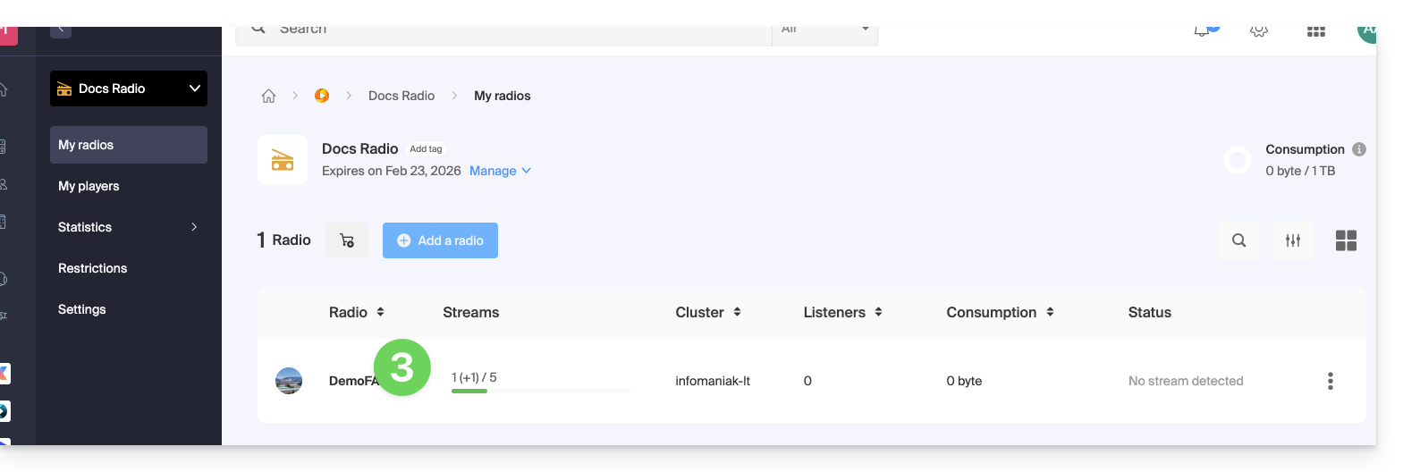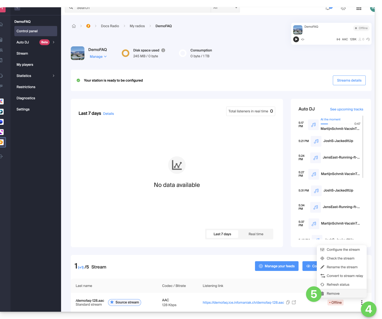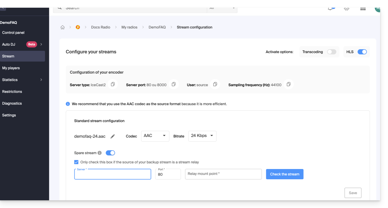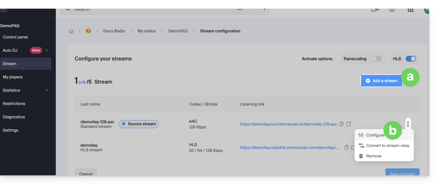 El flujo generado por el Auto DJ es un flujo de transmisión estándar que se beneficia de todas las herramientas del ecosistema Infomaniak: