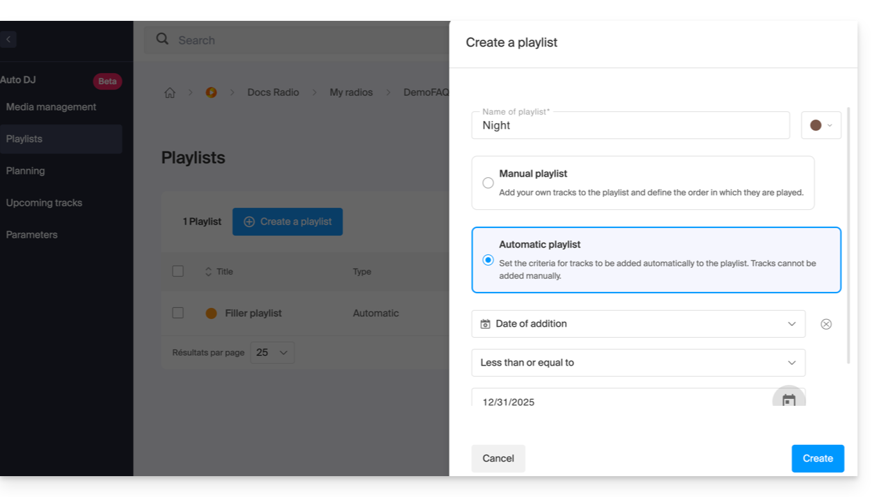 - Listas de reproducción automáticas: defina criterios inteligentes (por etiquetas, estilos o artistas) para que el sistema genere dinámicamente la lista de reproducción: