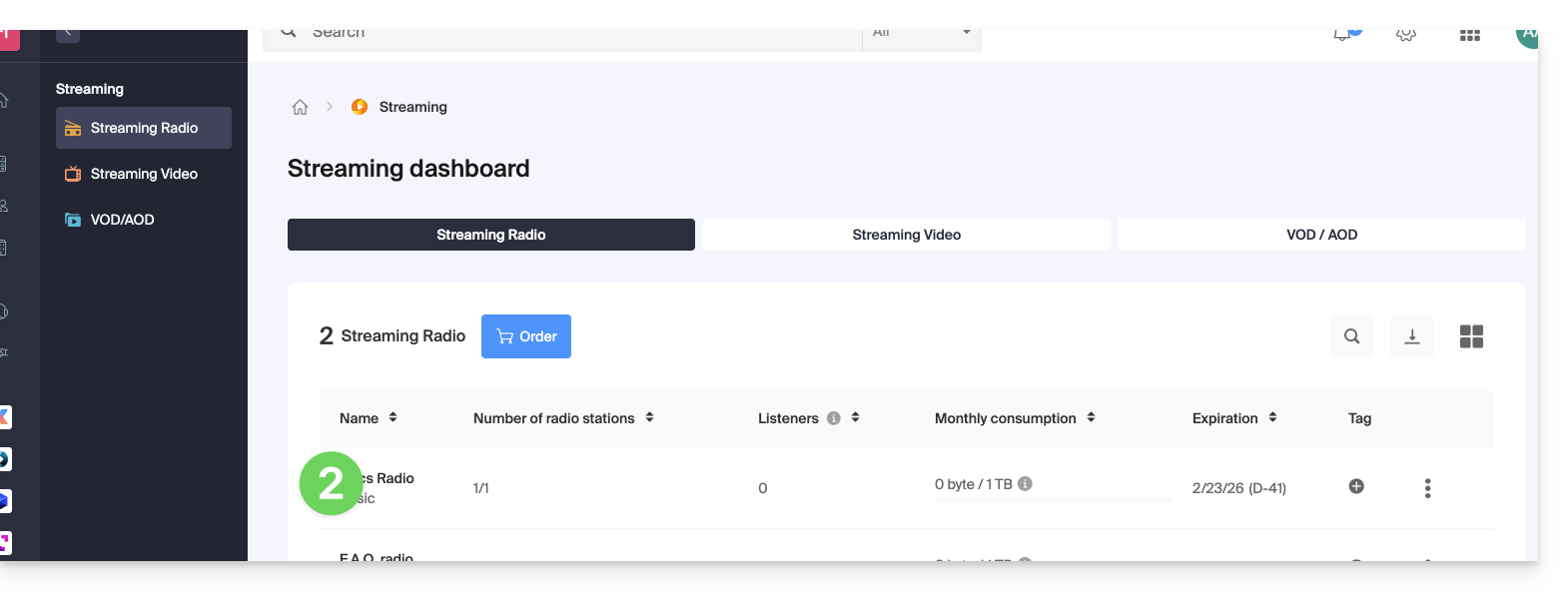 Esta guía explica cómo modificar una oferta de Streaming Radio para, por ejemplo, aumentar el límite máximo de consumo mensual o la calidad de difusión (bitrate max).