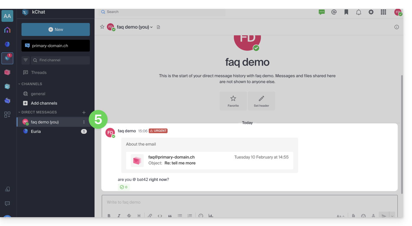 Cuando haya recibido un correo electrónico de un colaborador y desee responderle directamente en kChat: