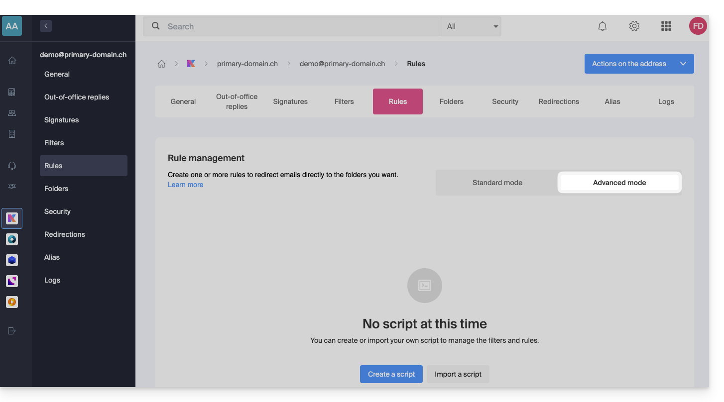 Esta guía explica cómo crear un modelo para la herramienta de clasificación/filtro (condiciones que permiten clasificar automáticamente sus correos electrónicos a partir de ciertos criterios) para todo su correo electrónico en la aplicación web Mail de Infomaniak (servicio en línea mail.infomaniak.com).