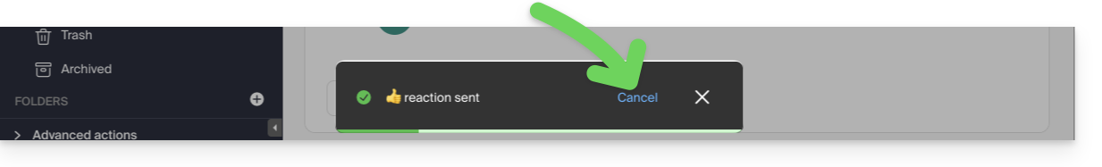 - Es posible cancelar el envío de una reacción (incluso si no ha activado un plazo de cancelación de envío de los correos electrónicos).