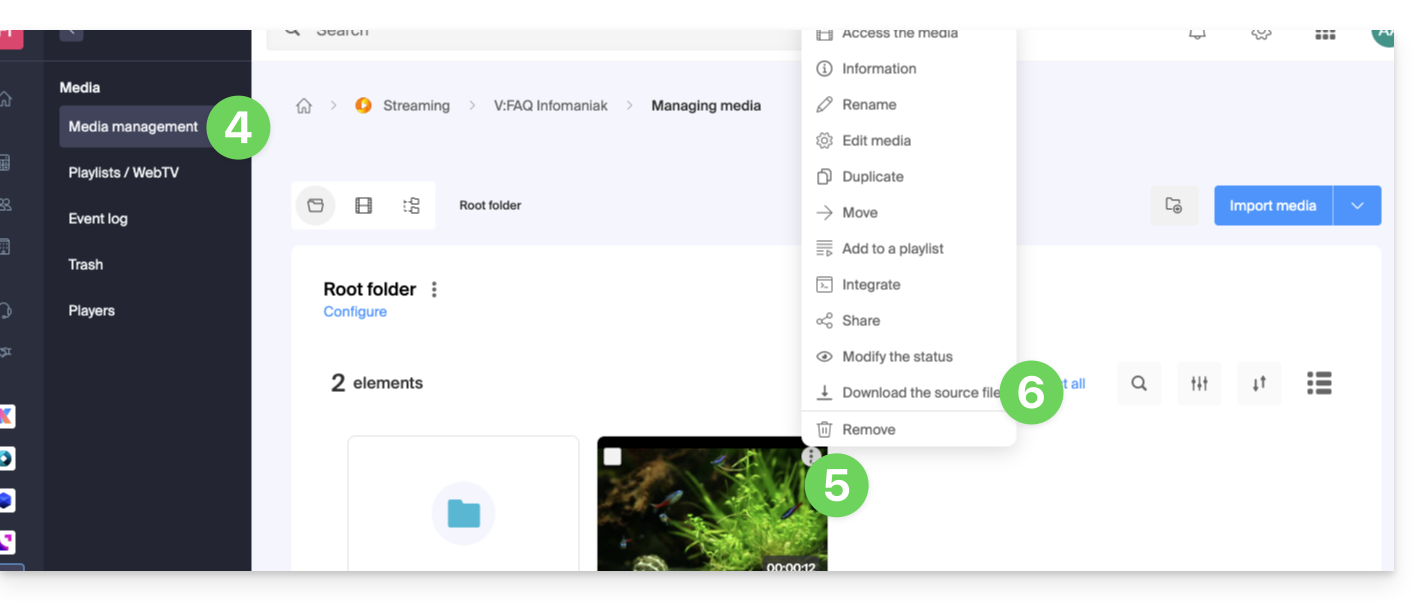 5. Cliquez sur le menu d'action ⋮ en haut à droite de la vignette du média concerné.