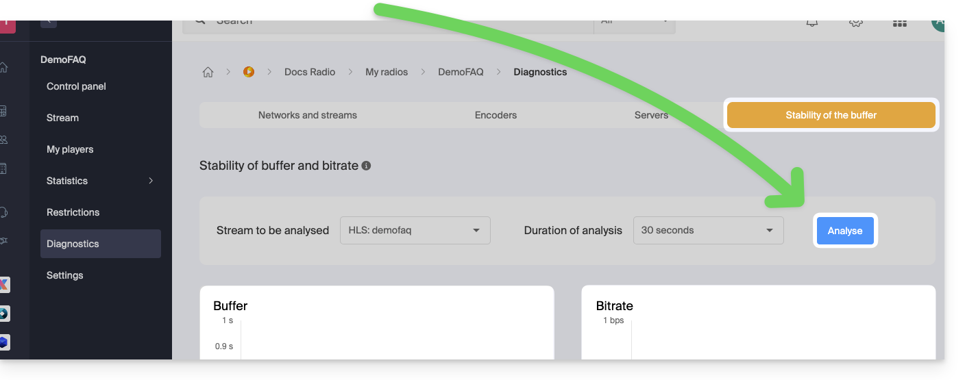 Le diagnostic disponible sur votre Manager affiche la quantité de mémoire occupée par le buffer chaque seconde. Si le flux fonctionne correctement, les valeurs doivent être stables: