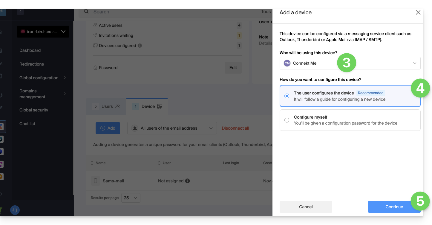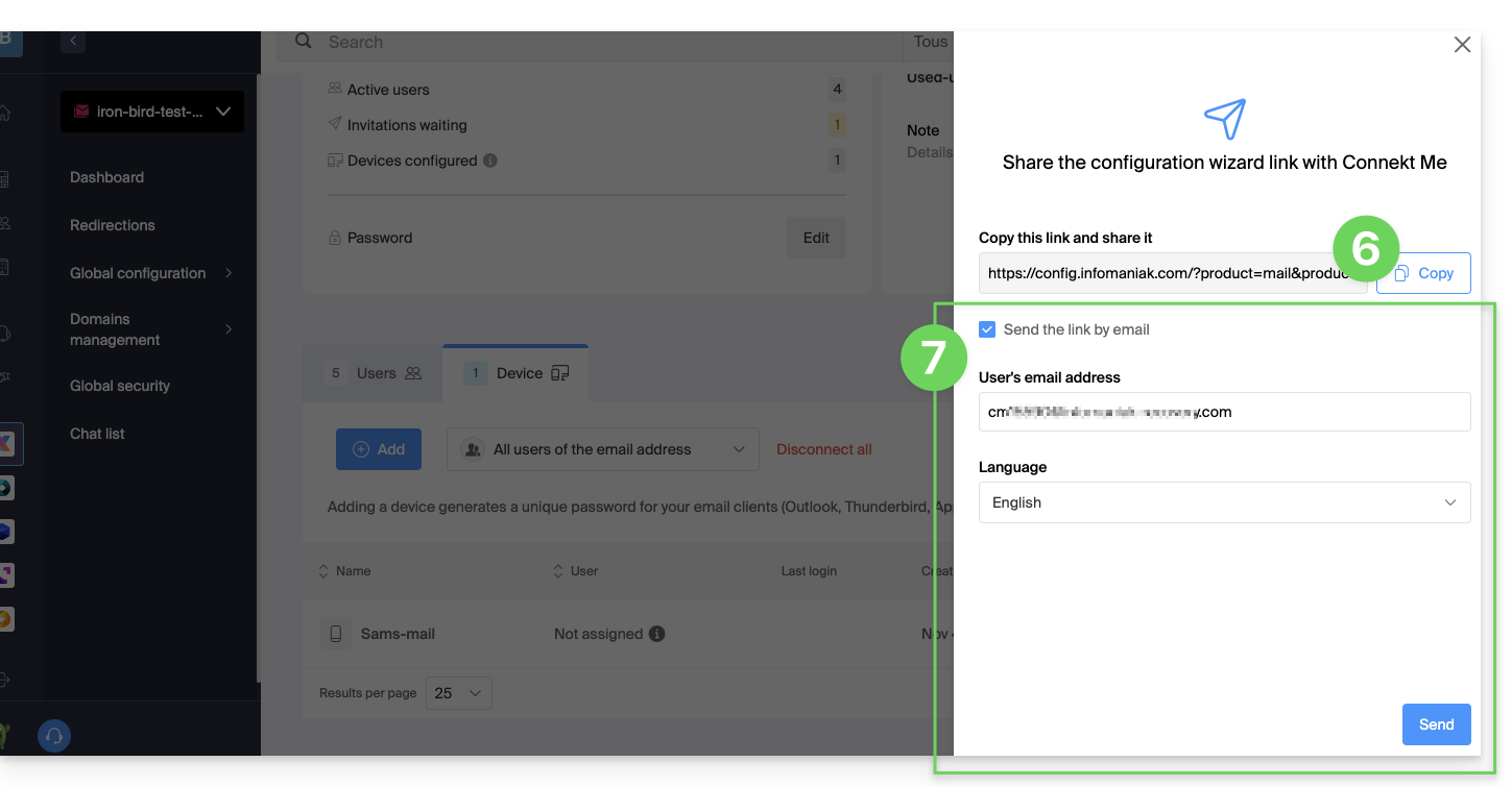 - Cliquez sur la première option permettant d'envoyer un assistant de configuration pour l'appareil de l'utilisateur.