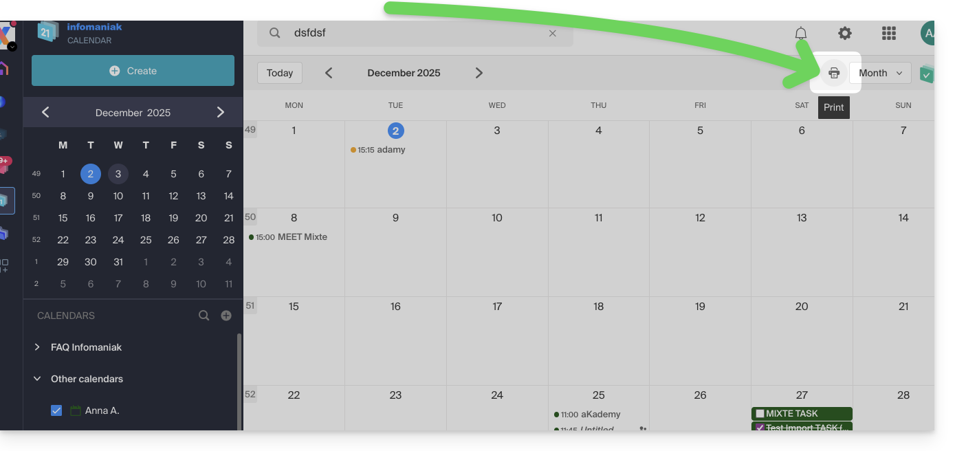 Imprimer un calendrier depuis l'app Web Calendar Infomaniak