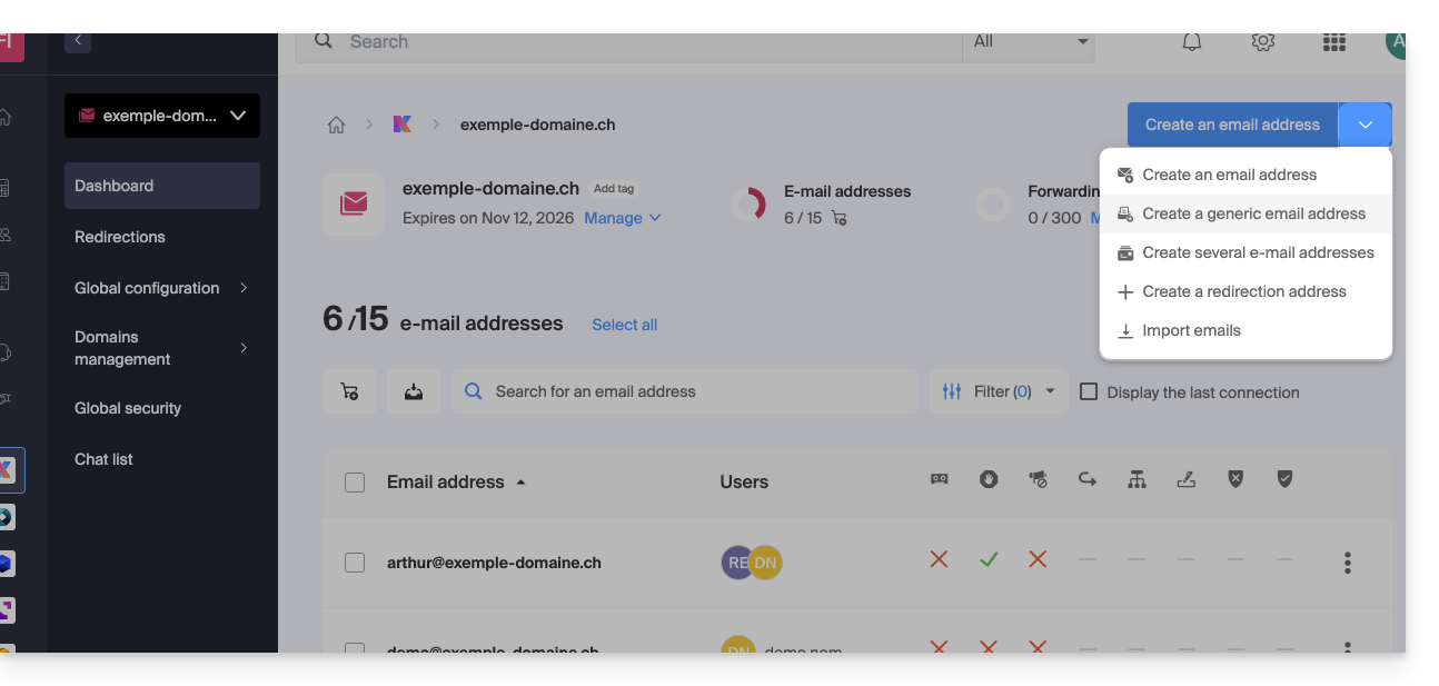 - Pour créer plusieurs adresses mail par lot, prenez connaissance de cet autre guide.
