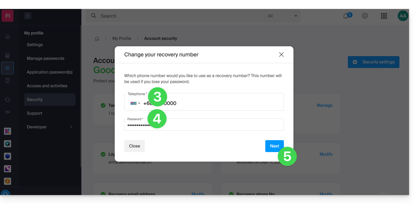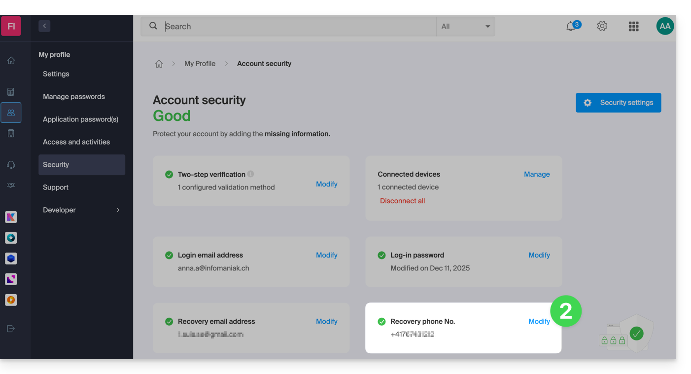 Modifier le numéro de téléphone mobile lié au compte Infomaniak