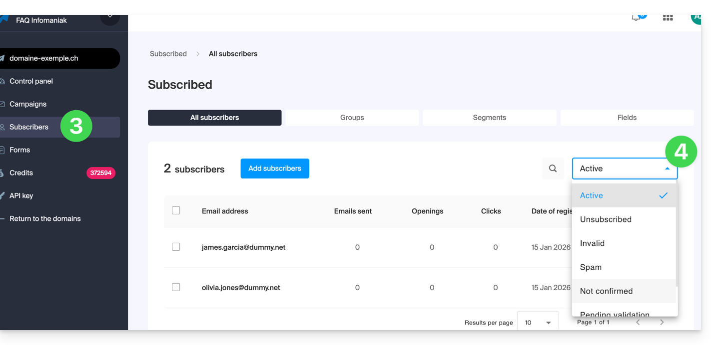 La gestion rigoureuse des adresses Invalides est essentielle pour garantir que vos Newsletters arrivent bien en boîte de réception (délivrabilité) et éviter le blocage des services d'envoi Infomaniak.