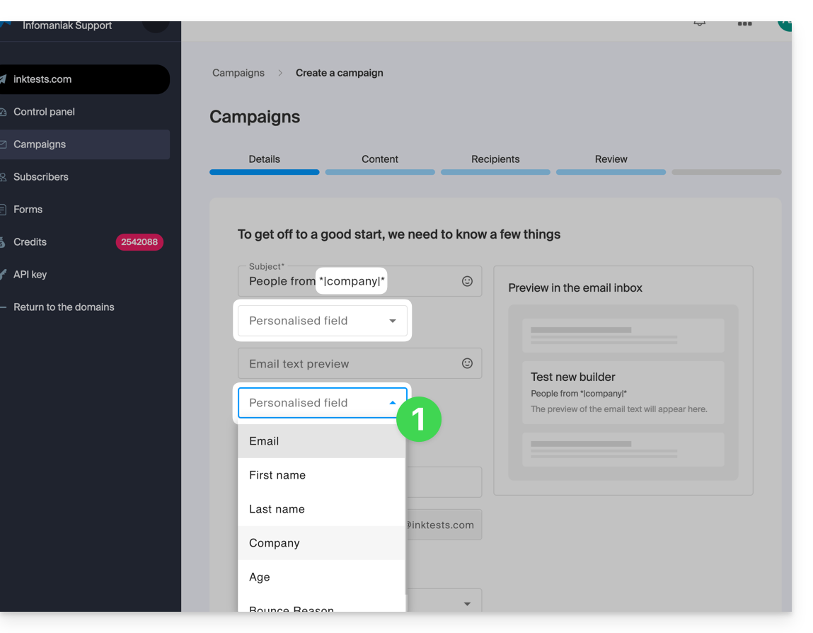 Lorsque vous créez une nouvelle Newsletter, insérez les champs personnalisés dans le sujet et le texte de prévisualisation: