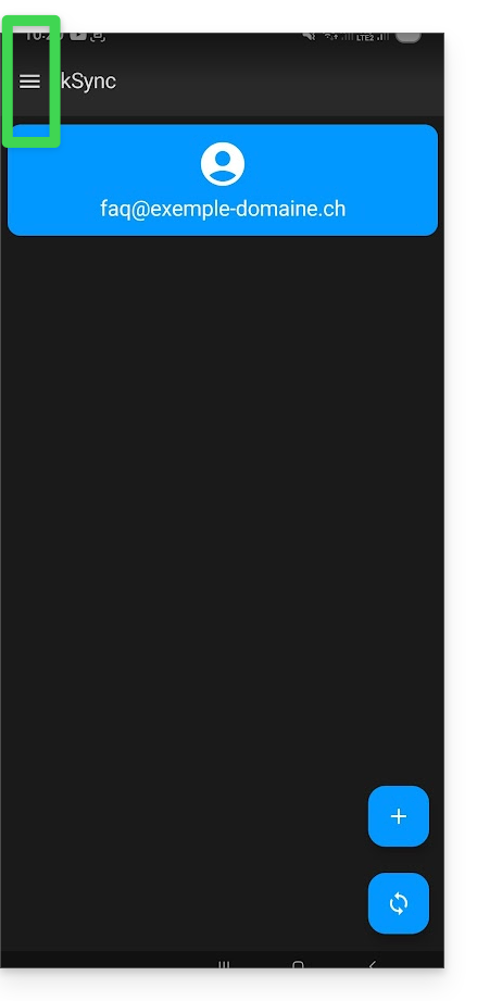 • Appuyez ensuite sur le bouton de menu à trois lignes horizontales ☰ puis sur l'élément de menu “Paramètres”: