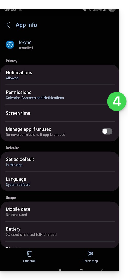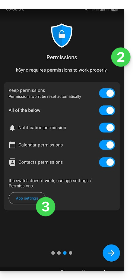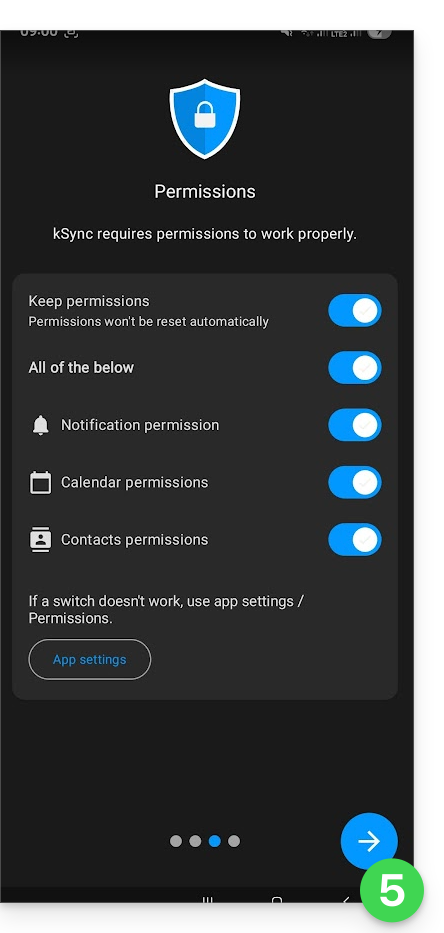 2. Autorisez kSync à accéder aux éléments requis sur l'appareil, le calendrier principalement.