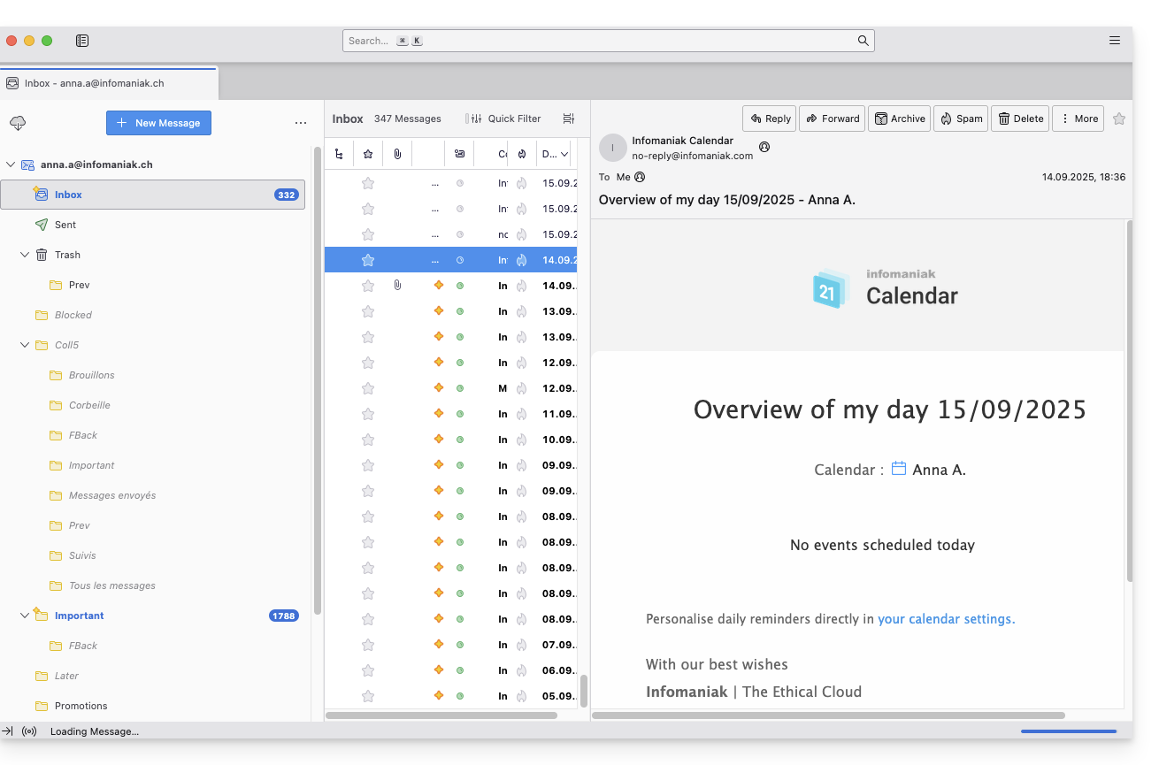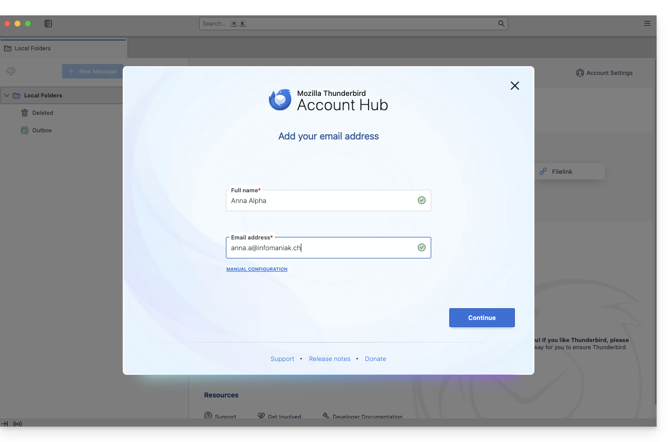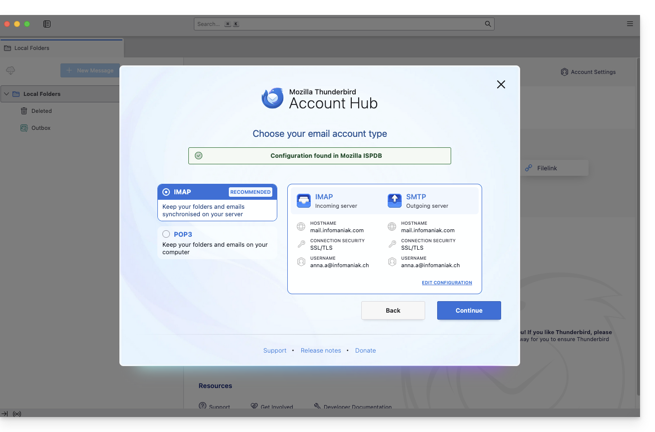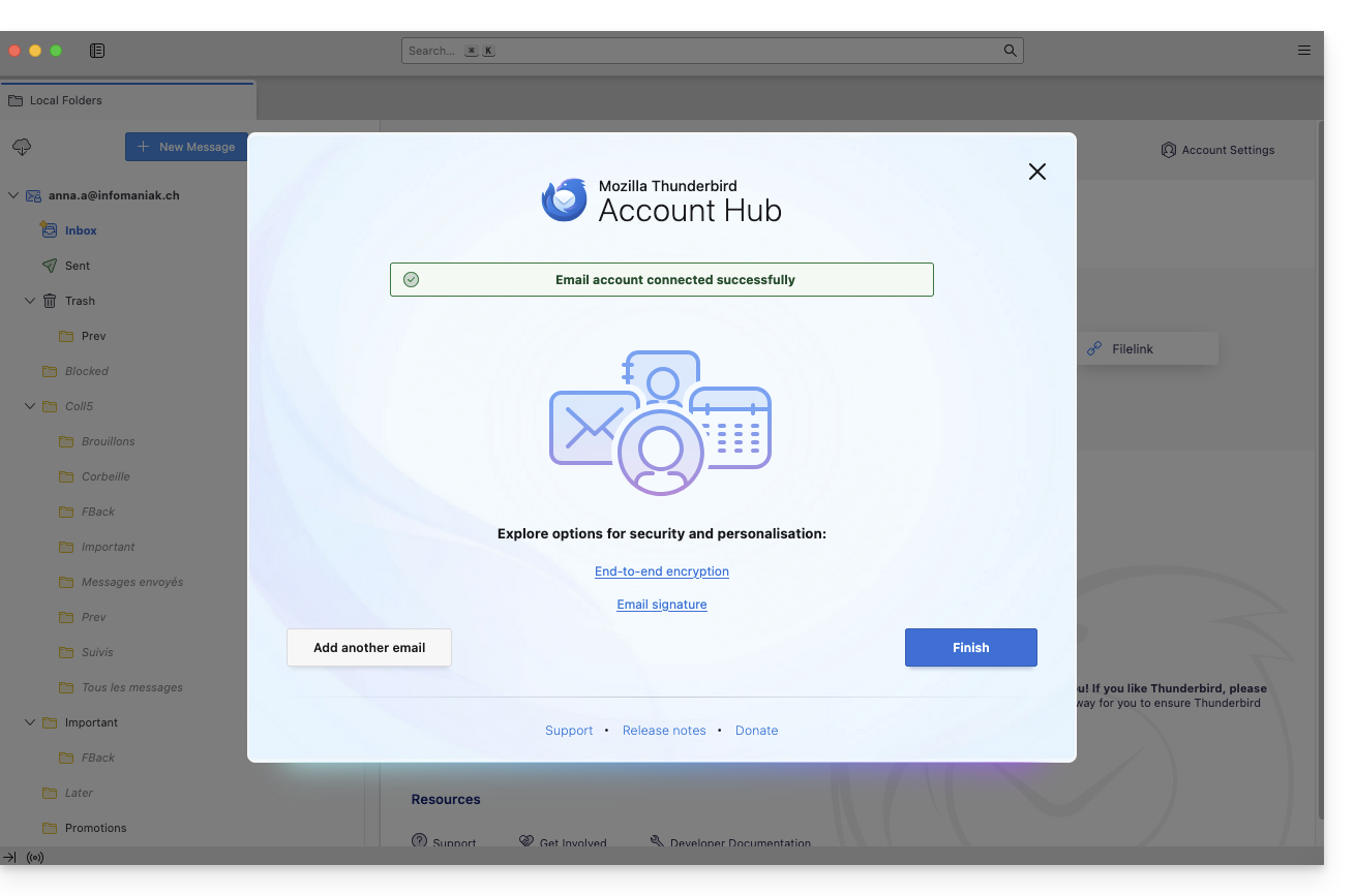 Ce guide explique comment connecter l'app desktop Thunderbird (application de bureau sur macOS / Windows / Linux) à une adresse mail hébergée chez Infomaniak.