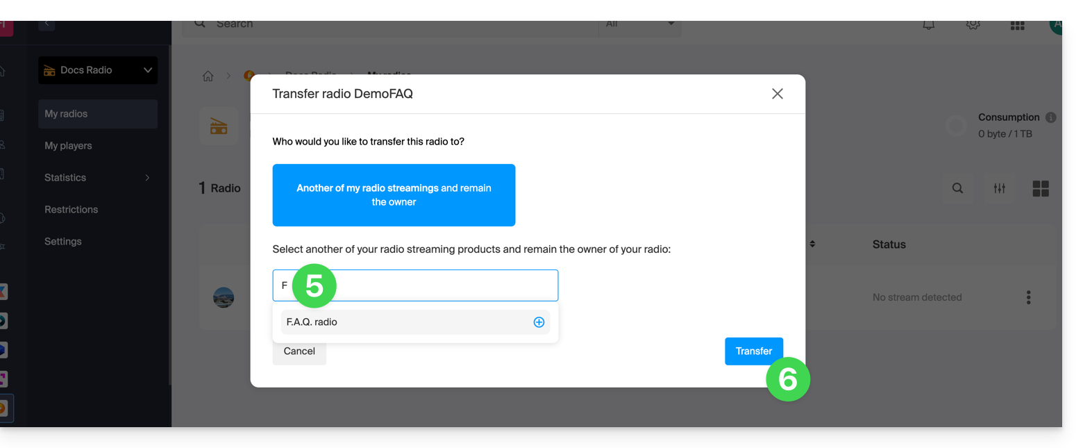 Prenez connaissance de cet autre guide pour transférer l'entierté des flux d'un Streaming Radio vers un nouveau propriétaire.