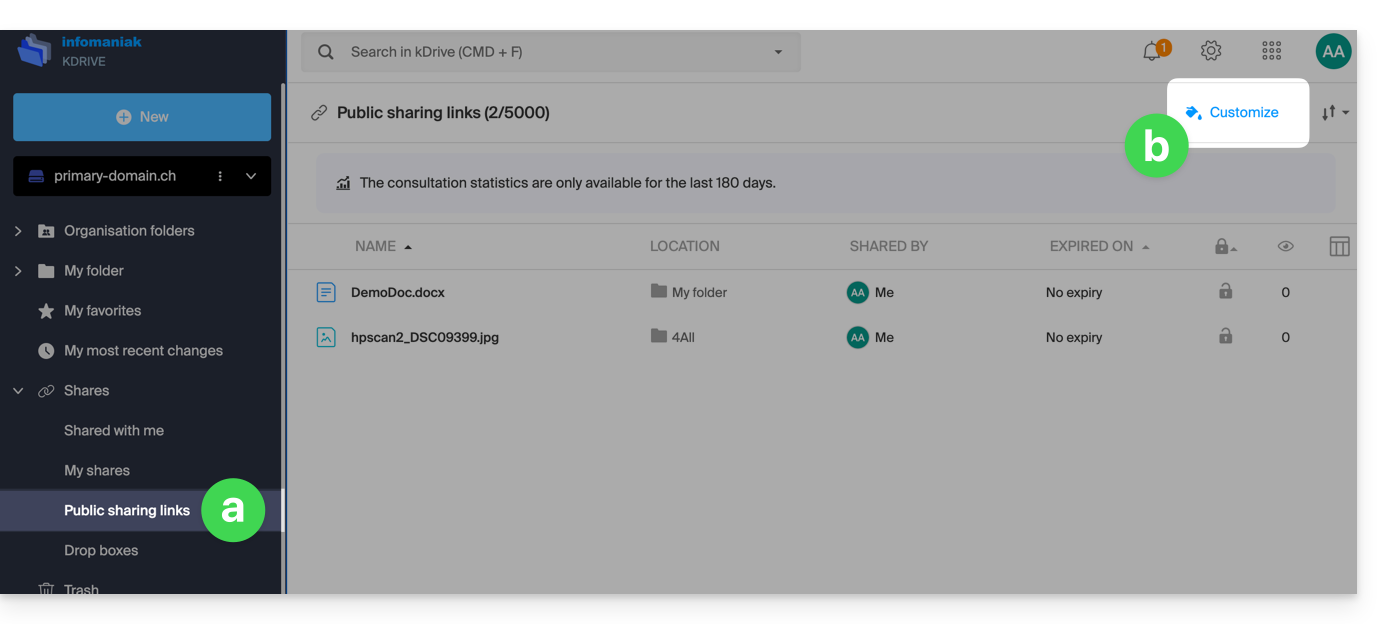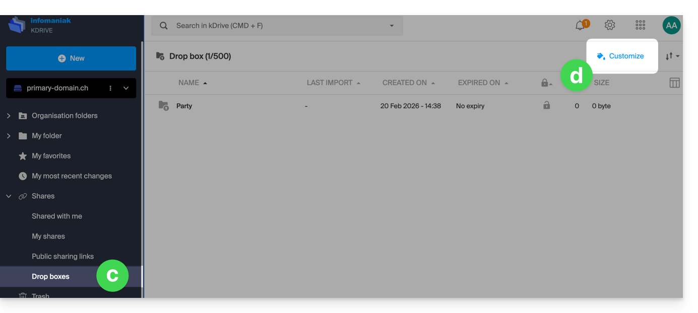 Personnaliser partages et dépôts kDrive