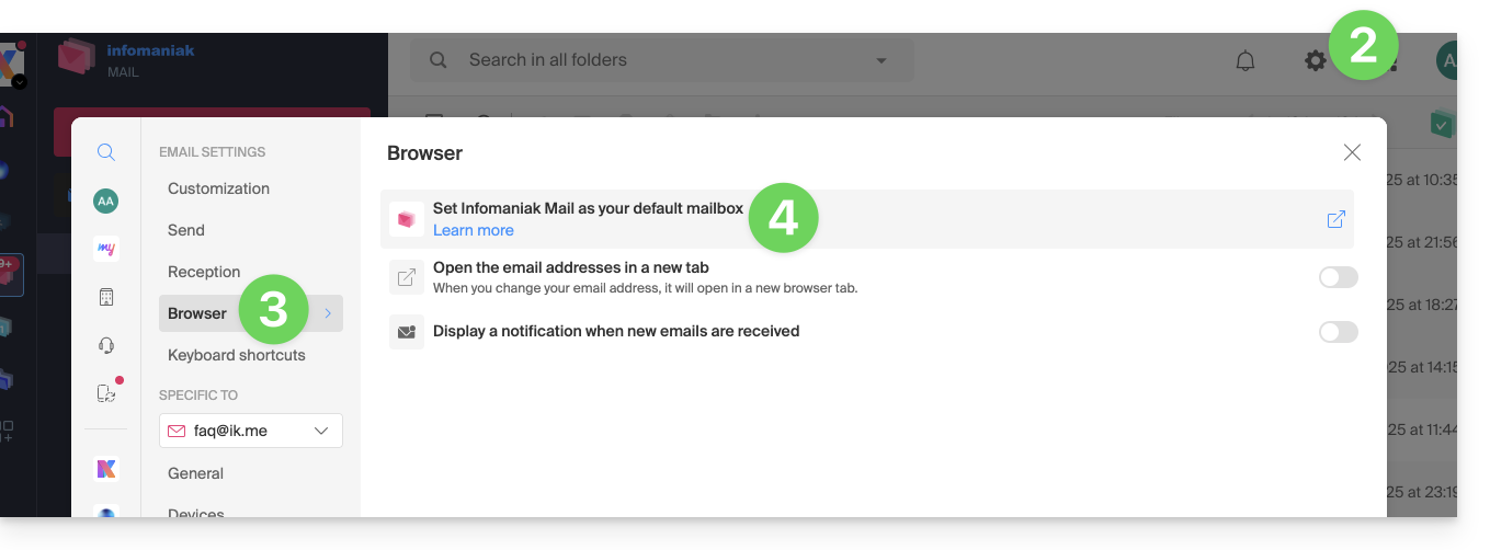 Définir par défaut l'app Web Mail Infomaniak pour gérer les liens mailto:
